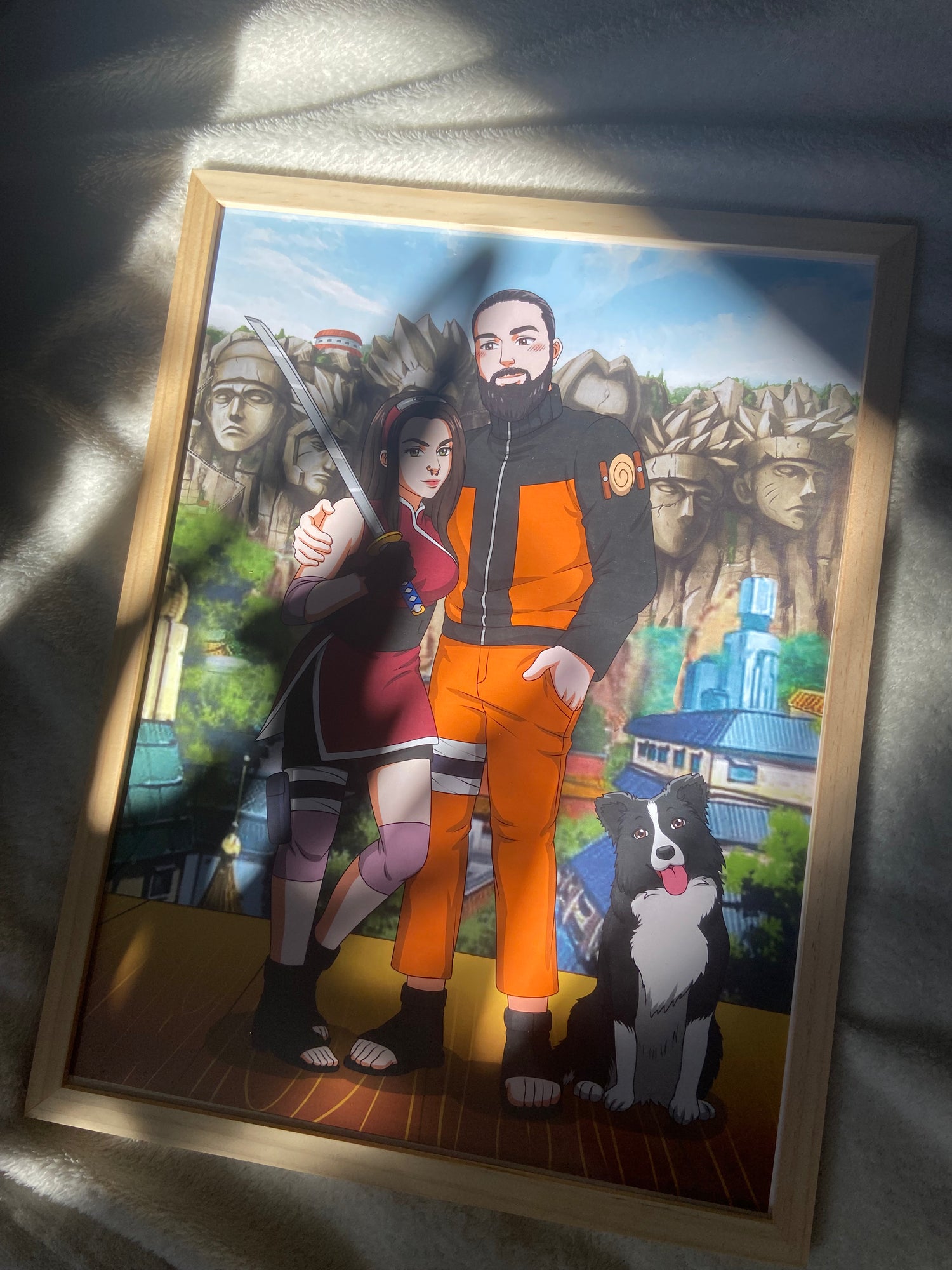Le portrait est imprimé et encadré dans un cadre A3 en bois de haute qualité